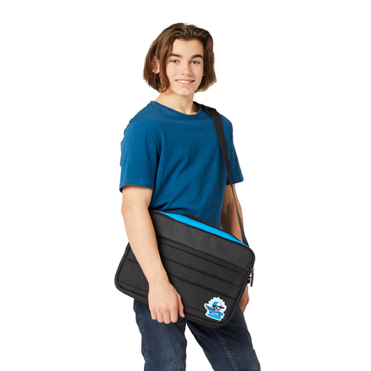 The Harlequin Tech Trolley Bag® is a patented design with a clever clickable wheel cover and a telescoping handle system, that features an anti-tipping aluminium handle with two different height settings. Made with quality ball-bearing wheels and two large compartments to store all your supplies, (plus an additional front pocket and USB connector), wheeling around, pulling all your books and laptop behind you, has never been so easy! This versatile bag has a strong yet super light frame, which can also conveniently be converted into a backpack. This makes it the perfect bag for weekends away and carry-on luggage when flying.